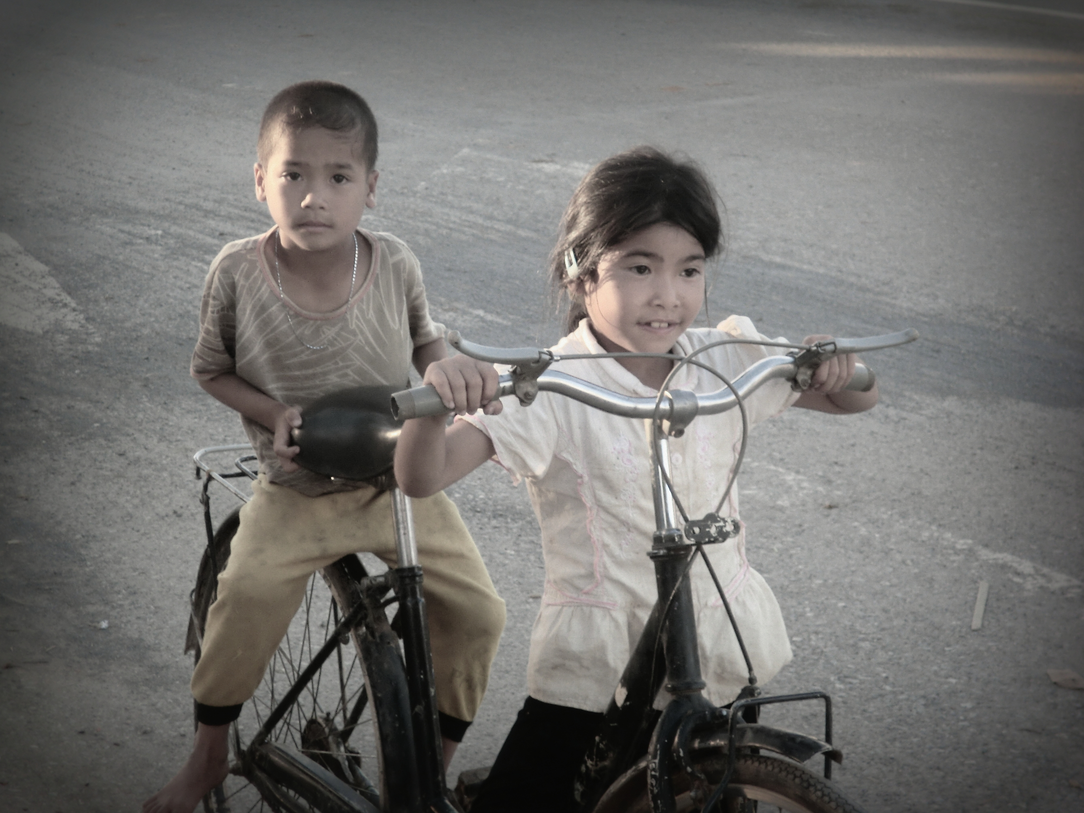 Trong khi lang thang đi dạo, tay cầm máy ảnh – thấy hai em nhỏ tôi đưa lên bấm một khoảnh khắc được một tấm hình trông thật thích – hai chị em trên chiếc xe đạp với ánh mắt thật hồn nhiên..