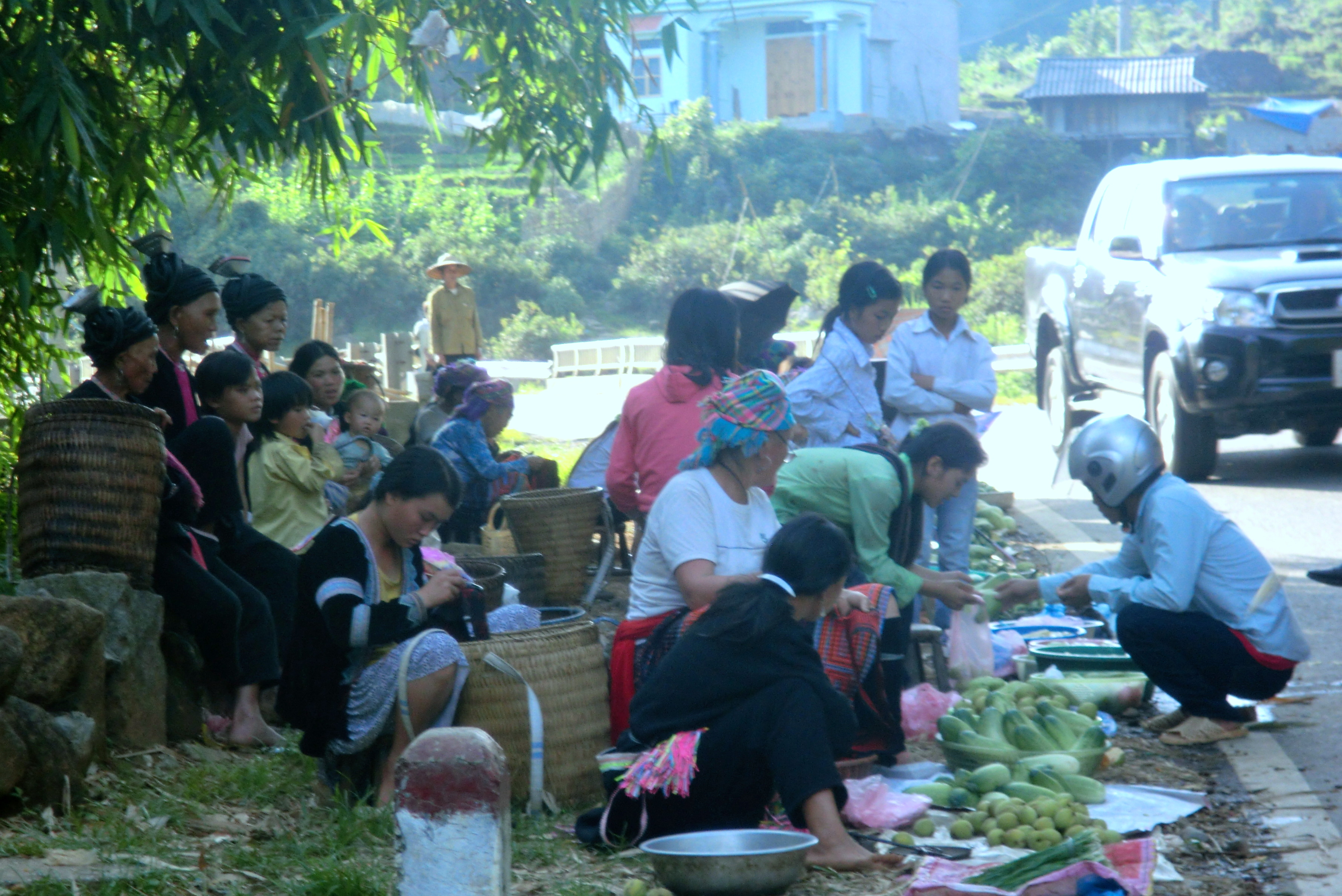 Tôi cùng anh Tuấn đi đến nơi mà ở có những ngôi nhà sàn tạo thành một dãy rất đẹp, ban đầu tôi nghĩ là bản của người Mông nhưng khi về tôi thấy những người Lào răng đen ở gần đó, mặc những chiếc váy kiếc của dân tộc Lào..ngẫm nghĩ, người Mông phần lớn là không phải ngôi nhà sàn 🙂