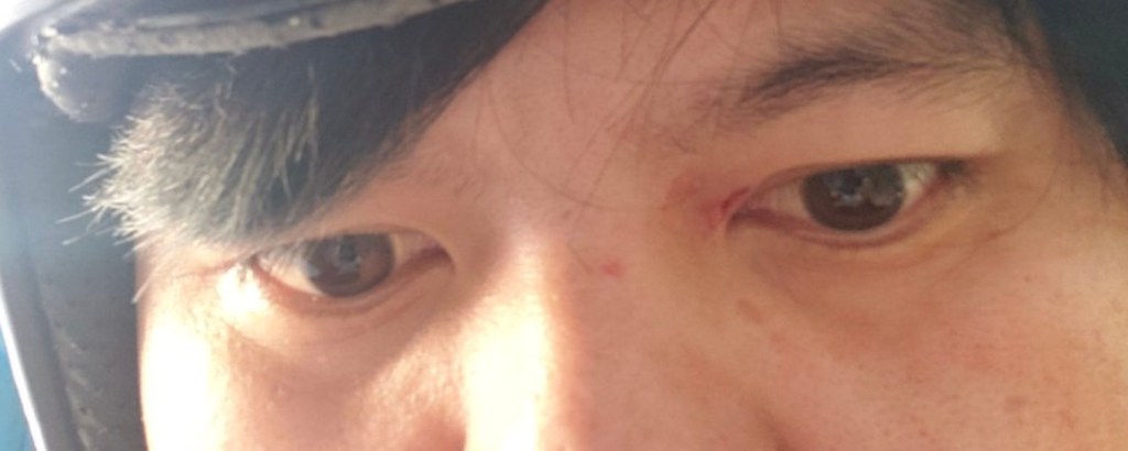 Tôi ôm mắt vì cảm thấy bất ổn, khi trấn tỉnh tôi mở mắt ra nhìn tay mình dính máu. Lúc đó tôi có phần hơi hoảng vì sợ máu chảy ra nhiều, anh thanh niên kia cũng nhìn ra được tôi đang chảy máu và phân trần bàn tay lỡ vung lên – đưa bàn tay lên tôi thấy trong tay có cầm chìa khoá xe..Đó là nguyên nhân làm nên vết xước.
