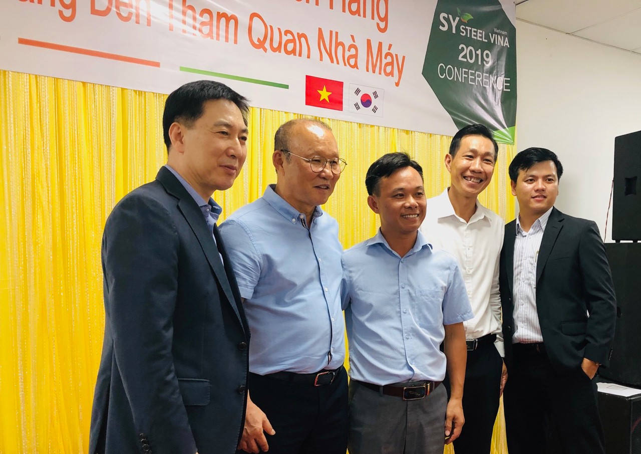Là bức ảnh kỷ niệm chụp cùng huấn luyện viên Park Hang Seo trong dịp thăm nhà máy SY Steel Vina ngày 14.07.2018 khi Thầy Park đang ký những trái bóng để tặng cho Khách hàng.