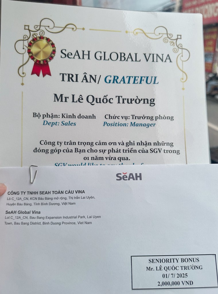 Nhớ, giờ này năm ngoái tôi đã nhận lời làm việc cho SeAH Global Vina – bắt đầu làm từ 01/07/2024.